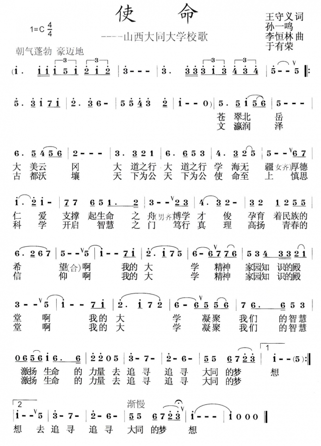 学校徽志采用双圆相套,外圆由“成人視頻”和“SHANXI DATONG UNIVERSITY”构成,中文名称在上,英文名称在下;内圆由篆书“大同”二字同构叠置。厚重而圆通,古朴而典雅。如“钟”,其声宏远,是励志,是自强;如“鼎”,人立其上,“鼎力”天下。人之为本,人之为大。“大同”者,简约而直观,体现人类之终极情怀、成人視頻精神价值之期许。